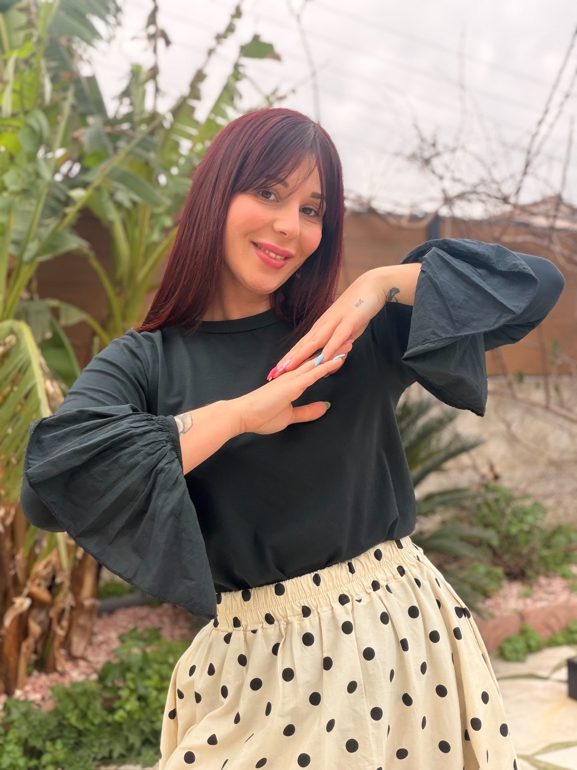 Haut flamenco en coton disponible en TU. Ce haut va pouvoir aller jusqu’à une taille taille 42/44.