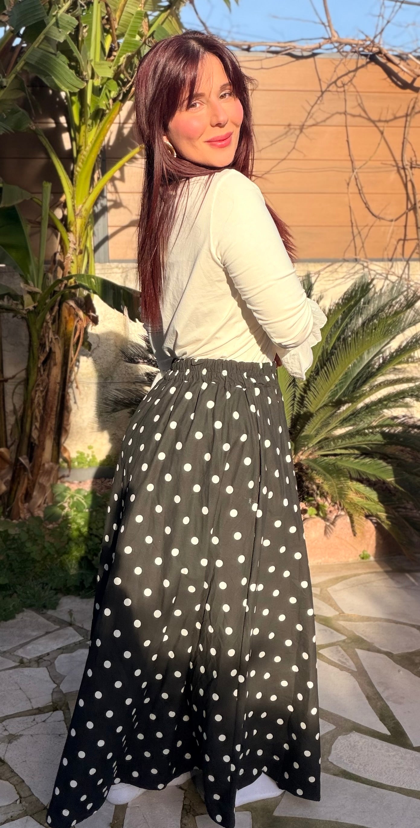 Jupe Corinne noire 100% coton. Cette jupe est élastique à la taille et va pouvoir aller jusqu’au 46.